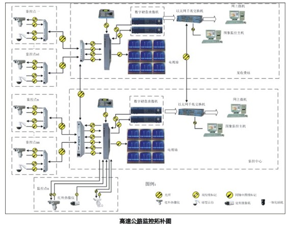 高速公路設(shè)計(jì)標(biāo)準(zhǔn)高、交通流量大、行車速度快等特點(diǎn),如不采用先進(jìn)的監(jiān)控管理措施,在交通量大、氣候惡劣的情況下,極易發(fā)生交通事故和交通阻塞。特別是,在一些車流量非常大的高速公路系統(tǒng)上,部署全程、全天候24小時(shí)視頻監(jiān)控顯得必不可少。這些監(jiān)控系統(tǒng)可實(shí)施交通流量和交通運(yùn)行監(jiān)視;對(duì)關(guān)鍵點(diǎn)進(jìn)行氣象檢測(cè);對(duì)關(guān)鍵路段實(shí)施交通實(shí)時(shí)全天候24小時(shí)控制;及時(shí)發(fā)現(xiàn)各種異常情況并采取應(yīng)急措施,保證高速公路高速、安全、經(jīng)濟(jì)地運(yùn)營(yíng)管理。