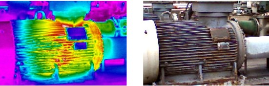 雖然紅外成像儀無法看到電機內(nèi)部,但外部表面溫度足以指示出內(nèi)部溫度高低。隨著電機內(nèi)部溫度的升高,其外表面的溫度也升高。下面我們看一個檢測實例: