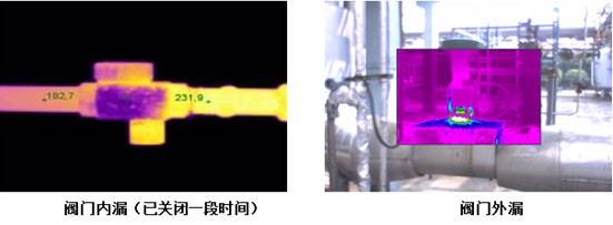 1 閥門內(nèi)漏、閥門外部滲漏一般很難檢測(cè)出來(lái),而其危害性很大。熱像儀可以迅速、直觀的檢測(cè)閥門的內(nèi)漏和外部滲漏,減少維護(hù)的工作量和提高效率。