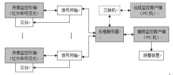 本地紅外熱像監(jiān)控與分析診斷系統(tǒng)由三大部分組成:紅外熱像終端,信號傳輸,處理服務(wù)器;。
