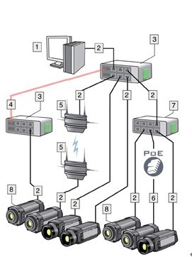 2)     直接網(wǎng)線傳輸(編號2所示)和無線傳輸(無線路由器,編號5所示)