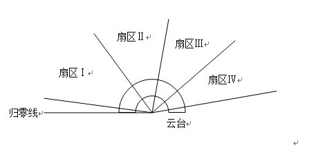 云臺(tái)從扇區(qū)Ⅰ開始順時(shí)針轉(zhuǎn)動(dòng),依次轉(zhuǎn)過扇區(qū)、扇區(qū)Ⅱ、扇區(qū)Ⅲ、扇區(qū)Ⅳ,然后返回到歸零線,開始下一個(gè)循環(huán)(一個(gè)周期劃分多少個(gè)扇區(qū)根據(jù)現(xiàn)場情況確定)。我們可以在這個(gè)扇區(qū)設(shè)定報(bào)警上限值,一旦檢測到物料溫度超過報(bào)警溫度,系統(tǒng)將馬上報(bào)警。