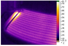 a紅外熱像儀是根據(jù)后風(fēng)擋電阻絲加熱熱像信息來分析溫度分布、溫升趨勢(shì)等狀況;