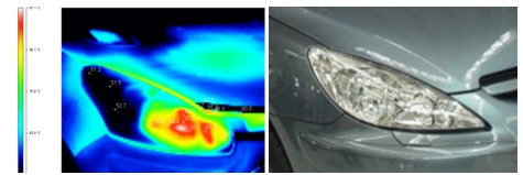 汽車工程師可以利用紅外熱像儀快速、方便的獲取車燈在使用的過程中,車燈的溫度分布,溫度變化等二維紅外圖像,在此基礎(chǔ)上,從而可以完善和優(yōu)化汽車前車燈的設(shè)計。