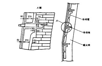 對于全部使用冷卻板設(shè)備冷卻的高爐,冷卻板設(shè)置在風(fēng)口部位以上一直到爐身中上部。爐身中上部到爐喉鋼磚和風(fēng)口以下采用噴水冷卻或光面冷卻壁冷卻。全部使用冷卻壁設(shè)備冷卻的高爐,一般在風(fēng)口以上一直到爐喉鋼磚采用鑲磚冷卻壁,風(fēng)口以下采用光面冷卻壁。在實際使用中,大多數(shù)高爐根據(jù)冶煉的需要,在不同部位采用各種不同的冷卻設(shè)備。這種冷卻結(jié)構(gòu)形式對整個爐體冷卻來說,稱為板壁結(jié)合冷卻結(jié)構(gòu)。近十多年來,隨著煉鐵技術(shù)的發(fā)展和耐火材料質(zhì)量的提高,高爐壽命的薄弱環(huán)節(jié)由爐底部位的損壞轉(zhuǎn)移到爐身下部的損壞。因此,為了緩解爐身下部耐火材料的損壞和爐殼的保護(hù),在國內(nèi)外一些高爐的爐身部位采用了冷卻板和冷卻壁交錯布置的結(jié)構(gòu)形式,起到了加強(qiáng)耐火材料的冷卻和支托作用,又使?fàn)t殼得到了全面的保護(hù)。