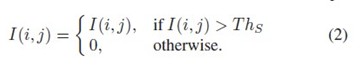 Thresholding is applied using (2), where I (i, j) represents the pixel value at row i column j and T hS  is the threshold. Pixels with zero value will not be considered for the next steps