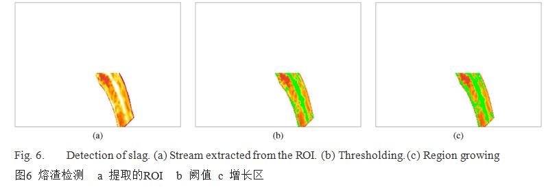 此過(guò)程將刪除歸類(lèi)在鐵水像素組的熔渣影響的像素。如圖6c所示,剩余的所有像素都來(lái)自鐵水。