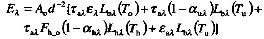 根據(jù)紅外熱像儀的測溫原理,在實(shí)際測量時(shí),熱像儀接收到的有效輻射包括3部分: 目標(biāo)自身輻射、環(huán)境反射輻射和大氣輻射。被測物體表面的輻射亮度為:
