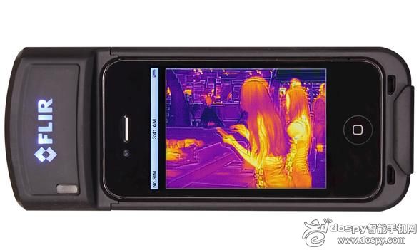 這種裝置比笨拙且體積龐大的夜視鏡要好多了。在華盛頓特區(qū)舉辦的2013 AUVSI展會(Association for Unmanned Vehicle Systems Internationl,國際無人機(jī)系統(tǒng)協(xié)會),一家名字正好就是FLIR的公司就向全世界展示了一款類似手機(jī)外殼一樣的、用于蘋果iPhone手機(jī)的精巧裝置,該裝置(原型機(jī),如圖)整合了一款商用紅外熱像攝像頭。這款針對iPhone的紅外攝像頭就是FLIR公司的Quark(夸克)相機(jī)核心系列之一。